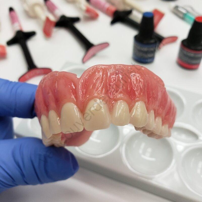Want to make your dentures look as natural as possible, especially if you have a high smile line (meaning your gums show above your teeth when you smile)? We have numerous options for you to make it look as realistic as possible. This is done with specific wax up, build up, glazing, and gingival toning technique which is meticulously applied to the gingival border areas of your finished dentures. Various shades and glaze brightness can be selected by you, this is what makes your finished dentures very personalized and unlike any other ones out there. Furthermore, the inner gingival denture base can also be characterized with root structures and rugae (for denture palate). Rugae helps the tongue feel more natural and aids with speech of the complete upper denture. Please note that the additional costs associated with such procedures are not part of our regular fees as it will take lots of extra time and materials to personalize your dentures with these techniques.
