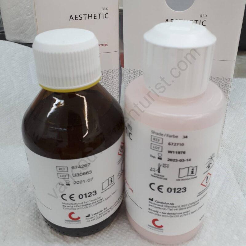We use 10 hour heat curing acrylic made by Candulor (Switzerland), and we have the entire spectrum of the harmonious Candulor system. This gives the option of recreating the natural perfection of the gingiva. This material has been developed by Swiss chemical engineers, denturists, and dental technicians. It has undergone numerous tests during which its superior high impact strength, color stability, fitting surface after processing, low residual monomer content, and minimal bite expansion were recorded and confirmed.